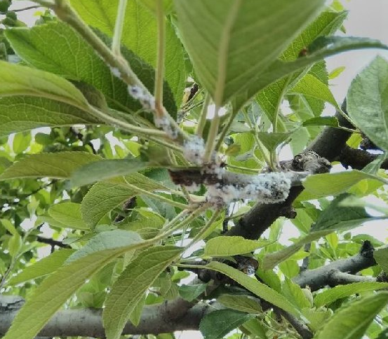 Elma- Elma Pamuklubiti: 1. Döl nimflerinin yoğun olduğu Haziran ayında yukarıdaki yöntemle ergin ve nimfler sayılır. Yapak başına ortalama 2-4 adet ergin ve nimf mevcut ise, 2. ilaçlama yapılır. Gerekirse Temmuz sonu veya Ağustosun ilk haftasından 2. bir ilaçlama yapılır.