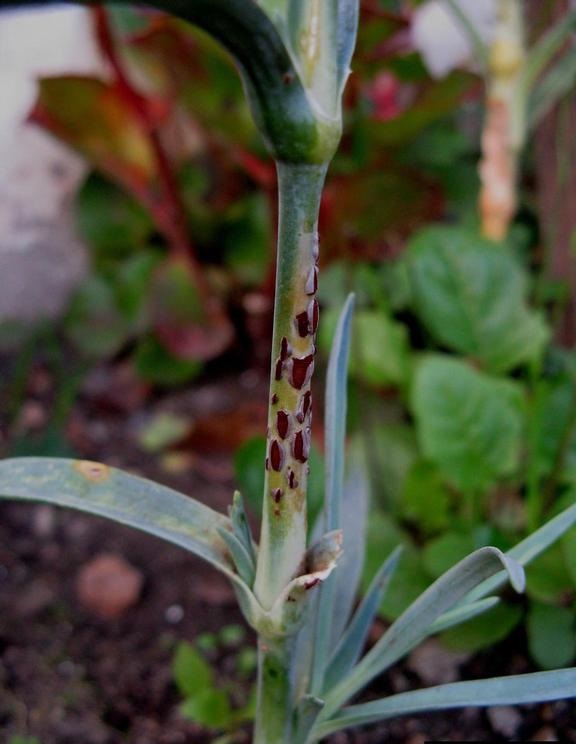 Karanfil (Süs Bitkileri)- Pas: Çelikler sıraya geçirilmeden önce ilaçlanmaya başlanmalı ve 10'ar gün ara ile yapılmalıdır.